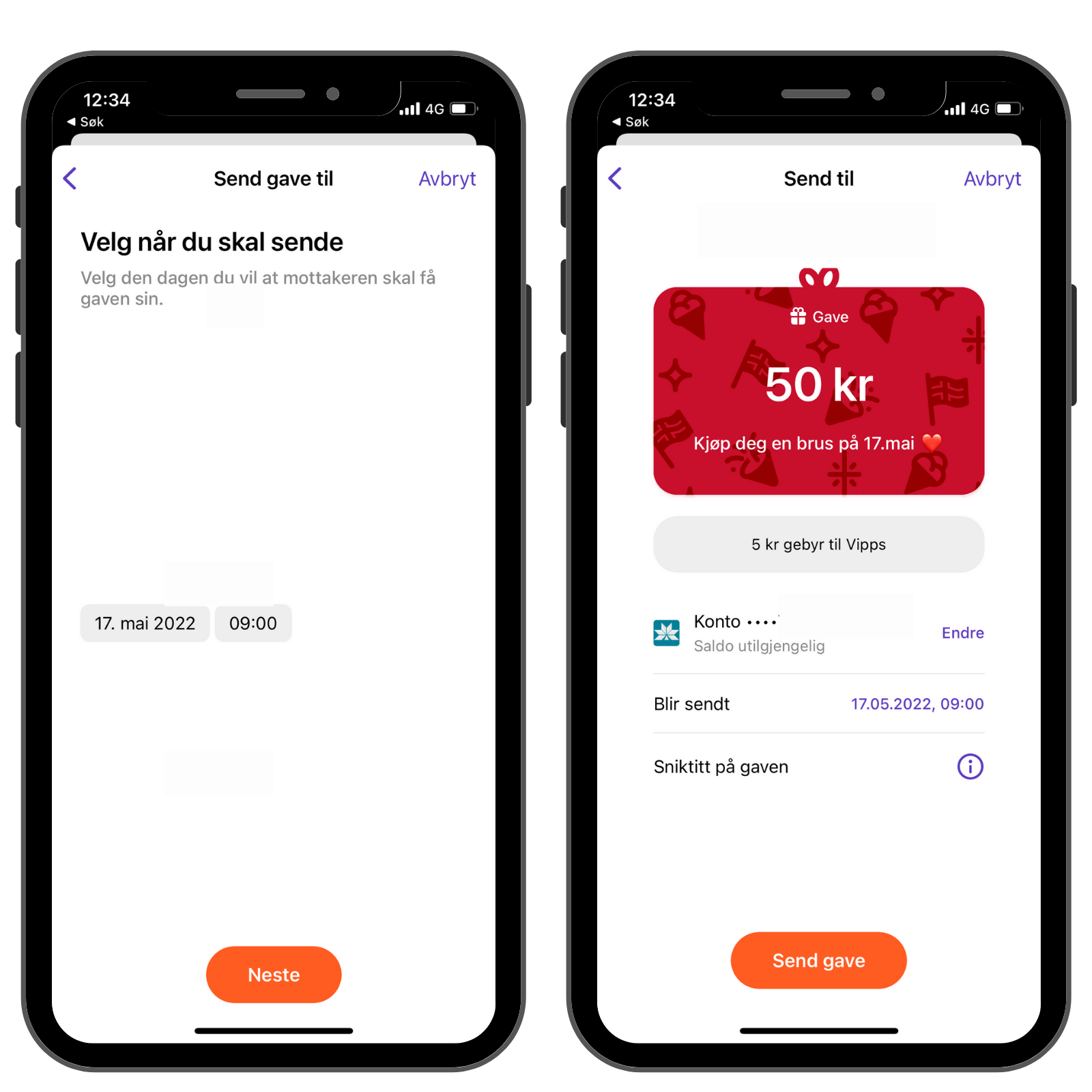 Når du sender en gave i Vipps kan du velge hvilken innpakning gaven skal ha, og tidspunkt gaven skal sendes.