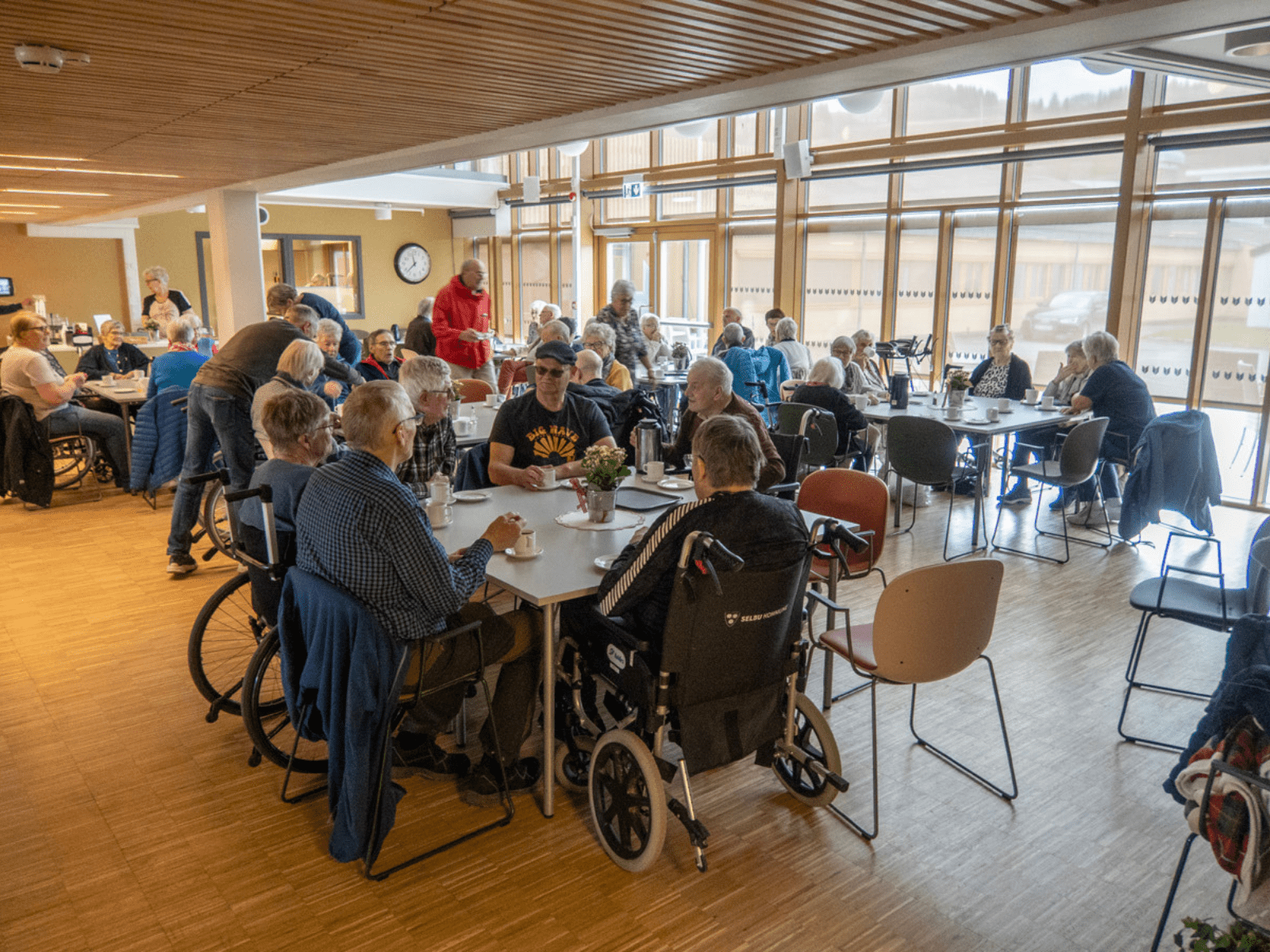 - Hver onsdag, nesten hele året kommer frivillige turvenner til sykehjemmet og Nestatunet for å ta med eldre ut på tur. Noen går selv, noen med rullator og mange i rullestoler. I alt er det nå mellom 30 og 40 deltakere. Vi har kjøpt inn både tur-rullestoler, kjøreposer, pledd og regnkep gjennom årene. Det er derfor godt tilrettelagt, både sommer og vinter. Etter turen i nærområdet, går turen til Åbiten der vi kjøper kaffe og vafler til alle deltakerne, forteller Karin Galaaen i Selbu Frivilligssentral